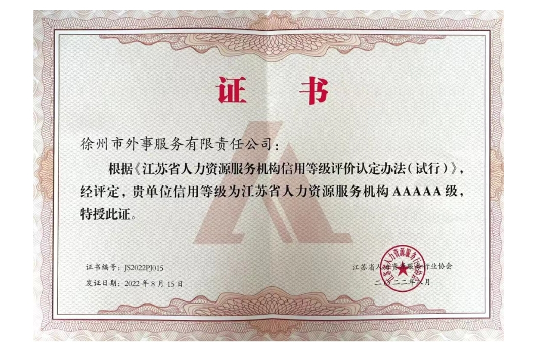 徐州外服董事長徐培喜先生被評選為【首批江…